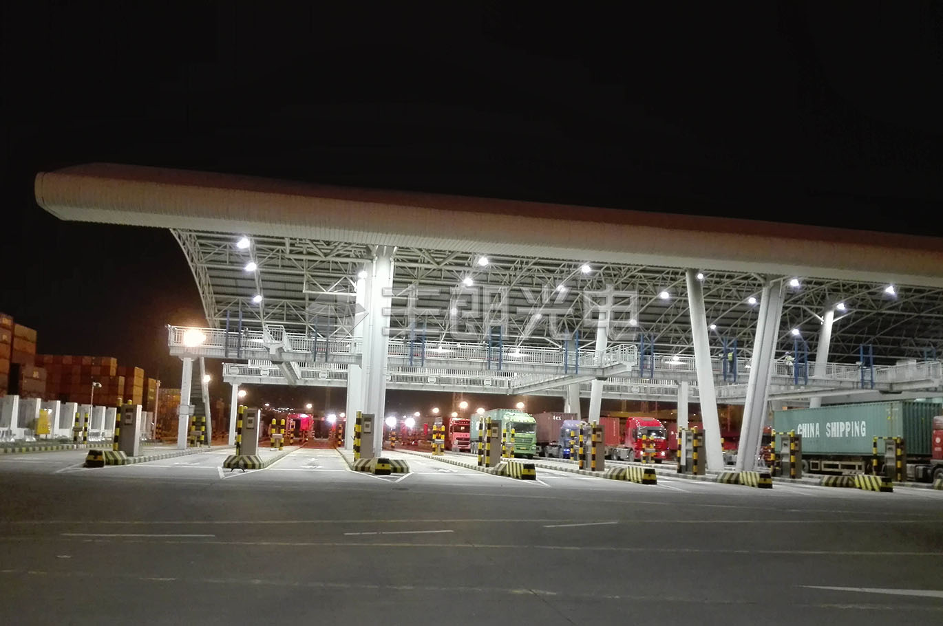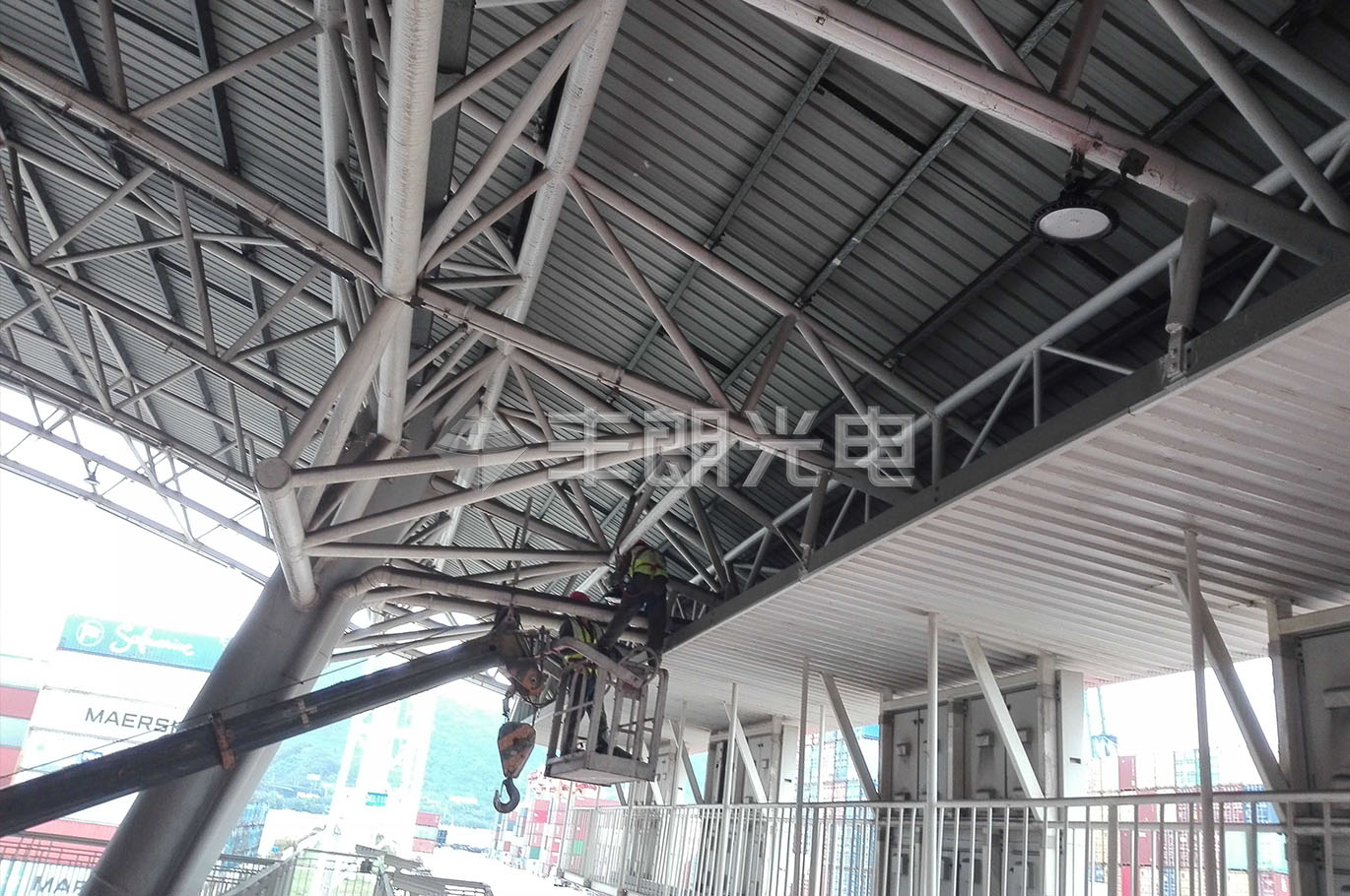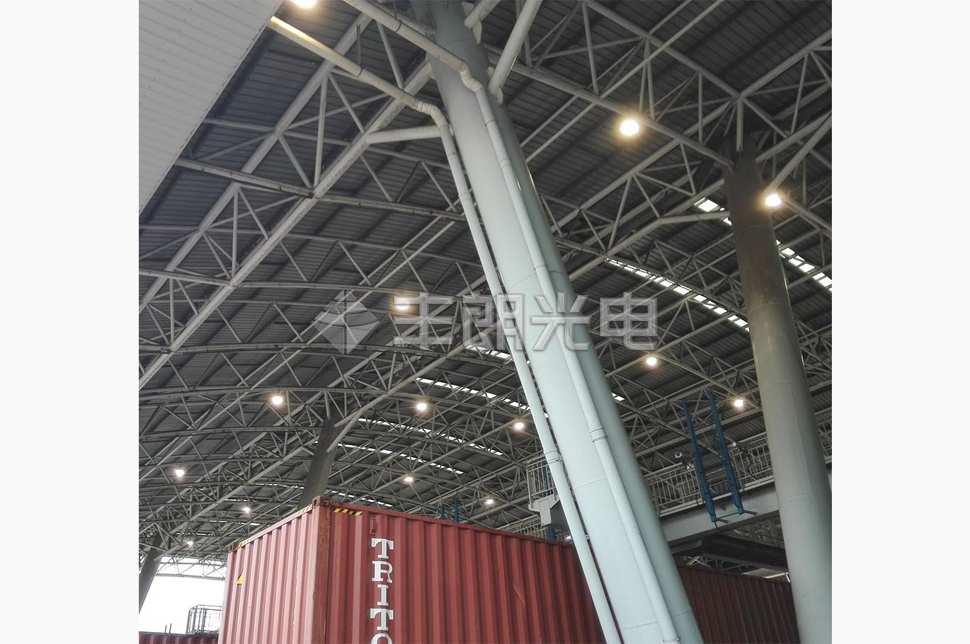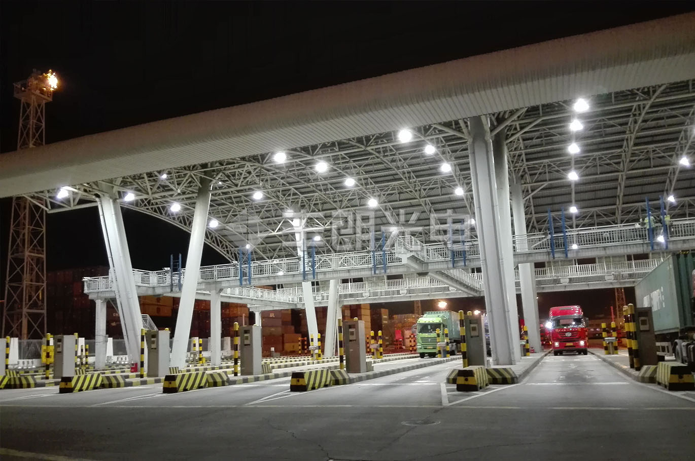 項目介紹: 港口雨棚照明改造項目采用150W UFO工礦燈(型號:FLG-US1-150),替換原400W金鹵燈。燈具照射角度大,照度均勻,光效好,低眩光,低頻閃,有效防止駕駛員在行駛過程中的視覺疲勞。節(jié)能效果明顯,比金鹵燈節(jié)能約60%。