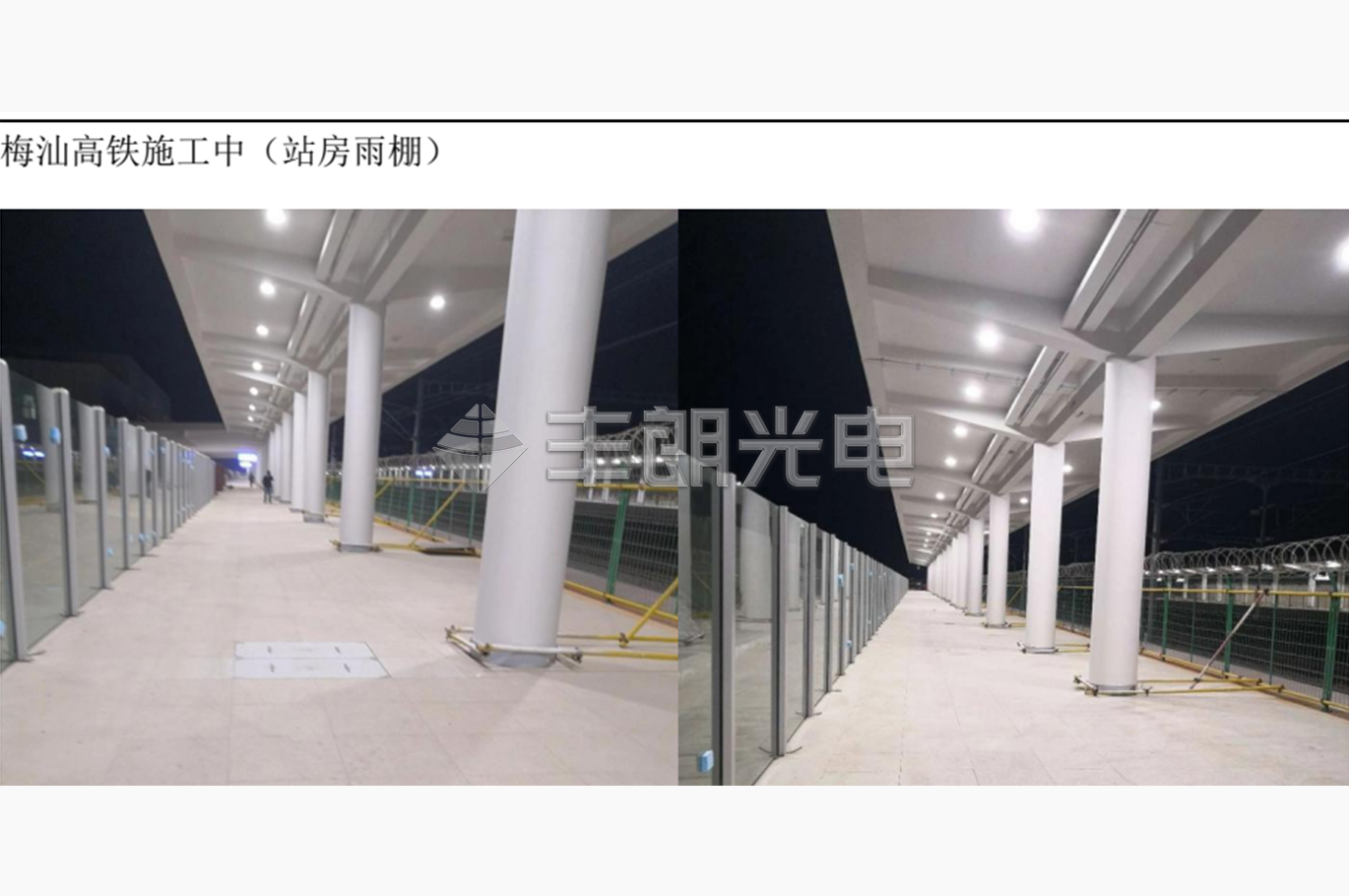 項目介紹: 高鐵站雨棚燈采用50W HT高鐵頂棚燈(型號:FLG-HT1-50),燈具照射角度大,照度均勻,光效好,低眩光,低頻閃,有效防止旅客的視覺疲勞。壽命長,獨有的散熱器技術充分保證了LED光源的使用壽命,高達50000小時以上。